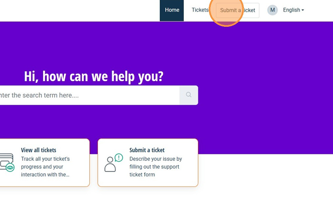 At the top of the page, you will see the Submit a ticket button. Click this to open the request form.