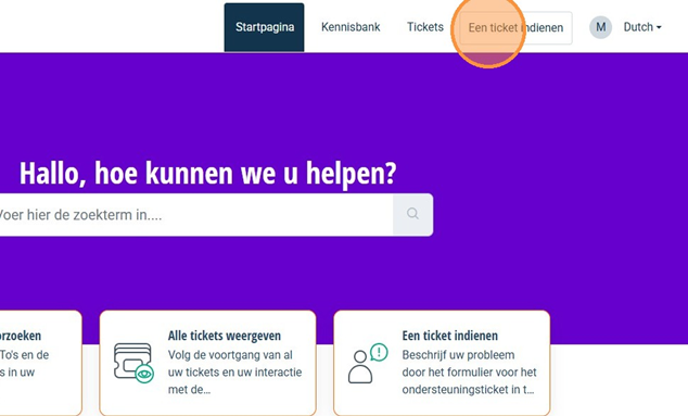 Bovenaan de pagina zie je de knop Ticket indienen. Klik hierop om het aanvraagformulier te openen.